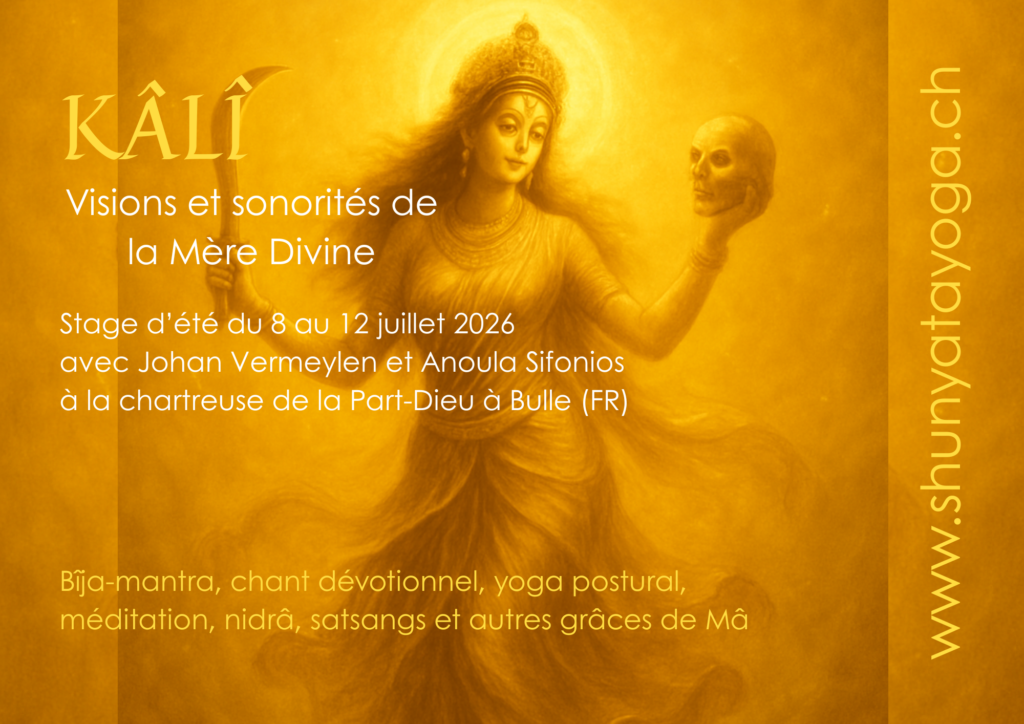 C’est une toute belle retraite qui s’annonce, dans laquelle nous allons pratiquer le nâda-yoga, le yoga du son, à grand renfort de chants, de bîja-mantra et de mantra, plus particulièrement dédiés à l’aspect féminin du Divin.