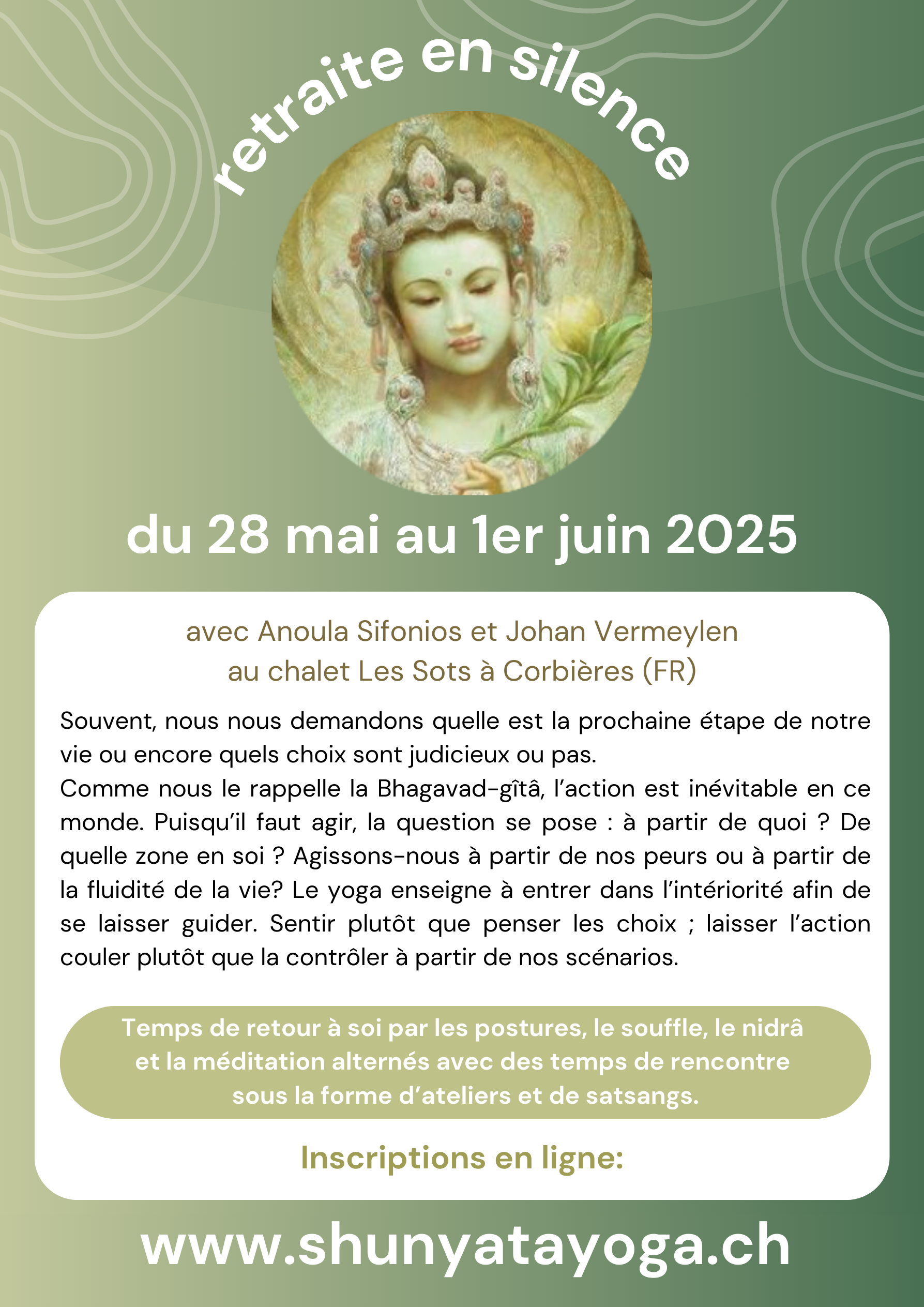 sous la forme d’ateliers et de satsangs.